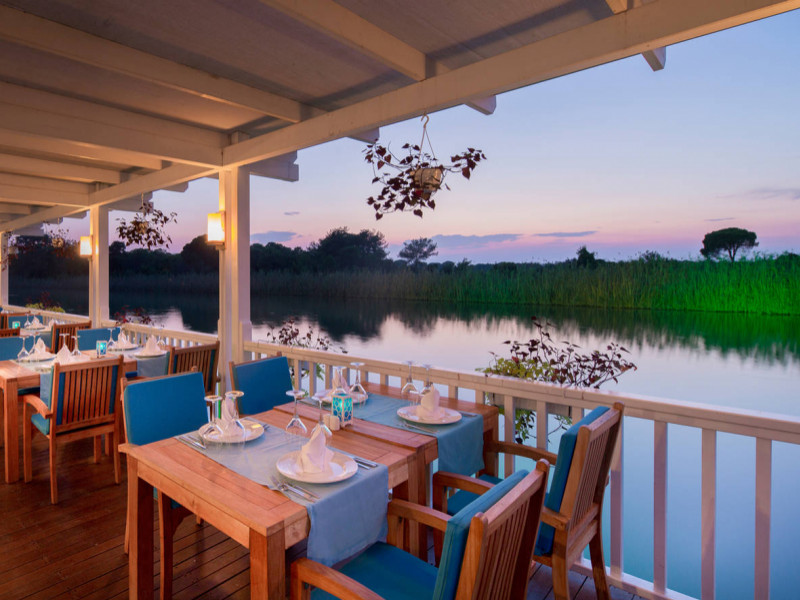 Titanic Golf Deluxe Belek je položený na rieke Besgoz, obklopený borovicovými lesmi. K hotelu patrí 27 jamkové ihrisko Titanic golf, kam je zabezpečený zdarma shuttle v pravidelných intervaloch. Rezort ma 9 vonkajších bazénov a 2 vnútorné a samozrejme tiež kompletne zariadené wellnes & spa. Stravovanie je zabezpečené v hlavnej bufetovej reštaurácii a tiež v štyroch á la carte reštauráciách. Iba 1 km je vzdialený National Golf Club.